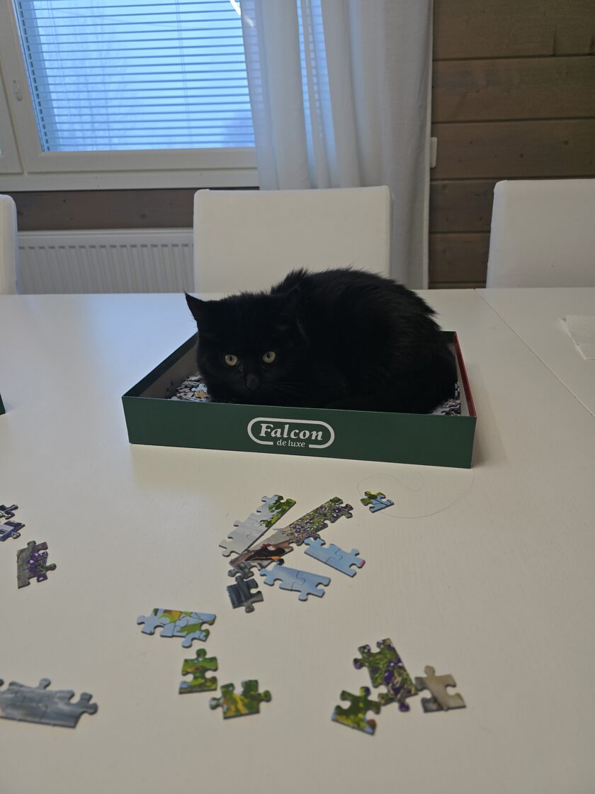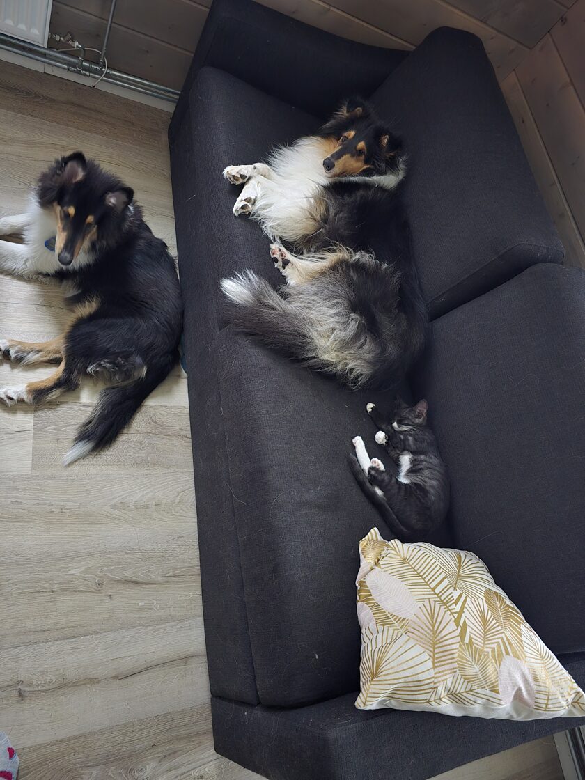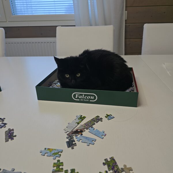 Susanna kissa on syntynyt 16.6.2025. Myyjä oli käyttänyt kissan lääkärintarkastuksessa ja rokottanut hänet. Myyntihetkellä hänen nimensä oli Kolmionenä ja Kaunis. Muutin nimen Susannaksi. Matilda kissa, väriltään musta on syntynyt 1.7.2025. Hän on myös käynyt lääkärillä ja rokotuksessa. Myyntihelkellä hänen nimensä oli Mökö. Luonteeltaan Susanna on kissoista rohkeampi ja kiintyi heti koiriin. Matilda on hieman varovaisempi koirien kanssa, mutta leikkii jo Susannan kanssa ja syövätkin samasta kiposta. Molemmilla on omat vessat mutta huomasin, että he käyttävät samaa vessaa. Vaihtoehdot kuitenkin on.