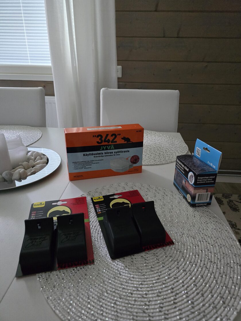 Ensin laitoin uretaanivaahtoa tohon koloon joka on tiskipöydän alla ja ei menny kuin alle vuorokausi niin hiiret oli siitä läpi. Ne siis tulee tuolta tiskipöydän alta roskiskaappiin ja on siellä. Oli aika toivoton olo. Purin sit tätä ongelmaa aika monelle ja sain monta neuvoa. Ostinkin sit aika kasan kaikkee ja hiiret ei enää tunnu niin isolta ongelmalta. Hiiriähän on kaikissa taloissa syksyllä, kun ne etsii lämpöä ja suojaa. Kaupassa sanoivat et pakkasten tultua tilanne rauhottuu. Toivottavasti.